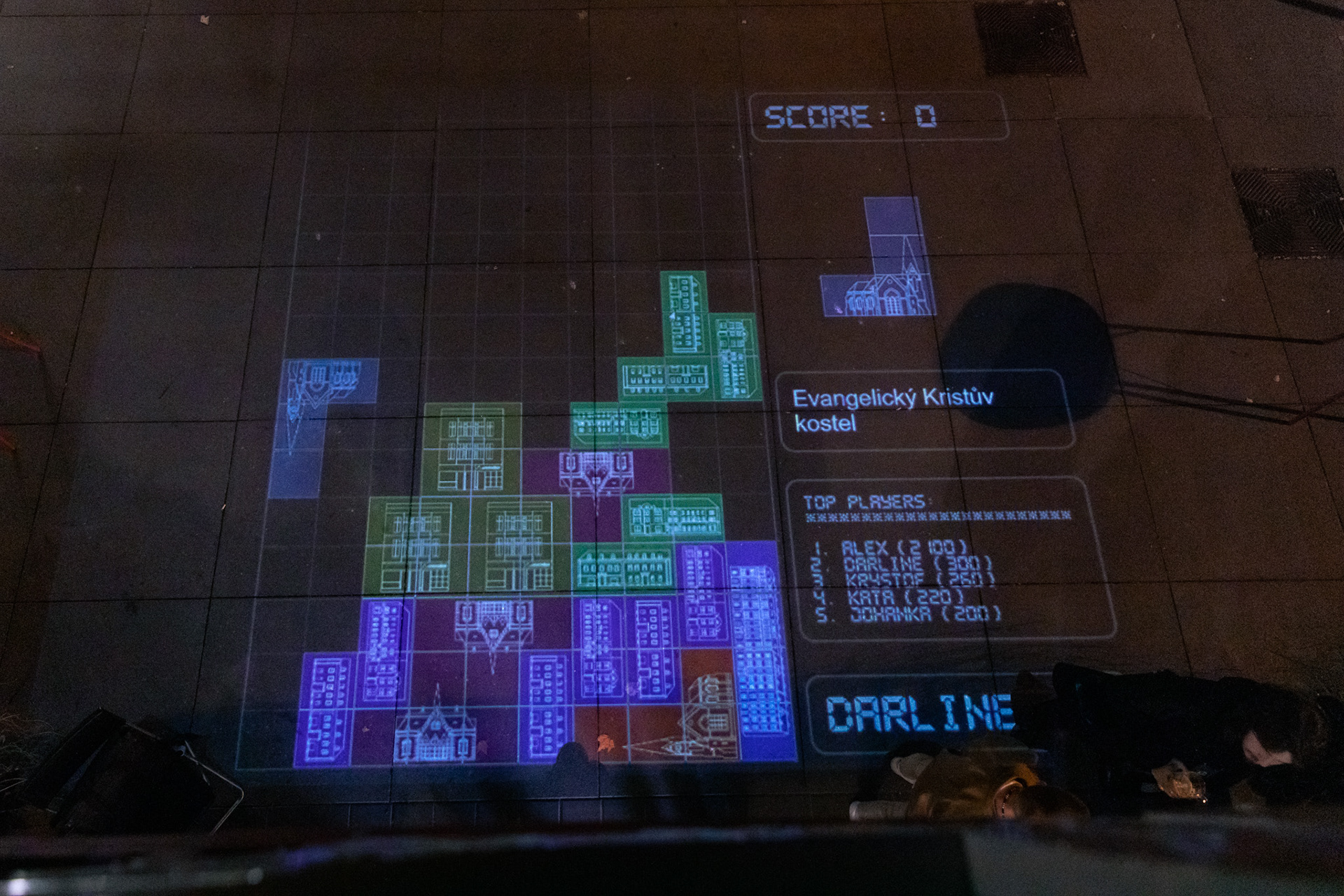 The mentioned demolition of the historic part of the city is exaggeratedly transferred to the environment of the computer game Tetris, in which the principle of building and then demolishing in order to construct new buildings is evident. New and new game blocks are stacked in a row and then removed and replaced by others. An endless cycle of game pieces that we only win over by destroying them, but is it the same with historical buildings? Was it a victory to get rid of them and build new, "better" buildings in the spirit of the regime of the time? It is not only the buildings that fell on 23 February 1980 that have become game objects in the legendary game of Tetris, in which, paradoxically, you can also again get rid of them in order to win. Or, on the contrary, in this game, you have the opportunity to embrace your victory and imaginatively build a new part of Ústí nad Labem out of buildings that you no longer see in the city streets